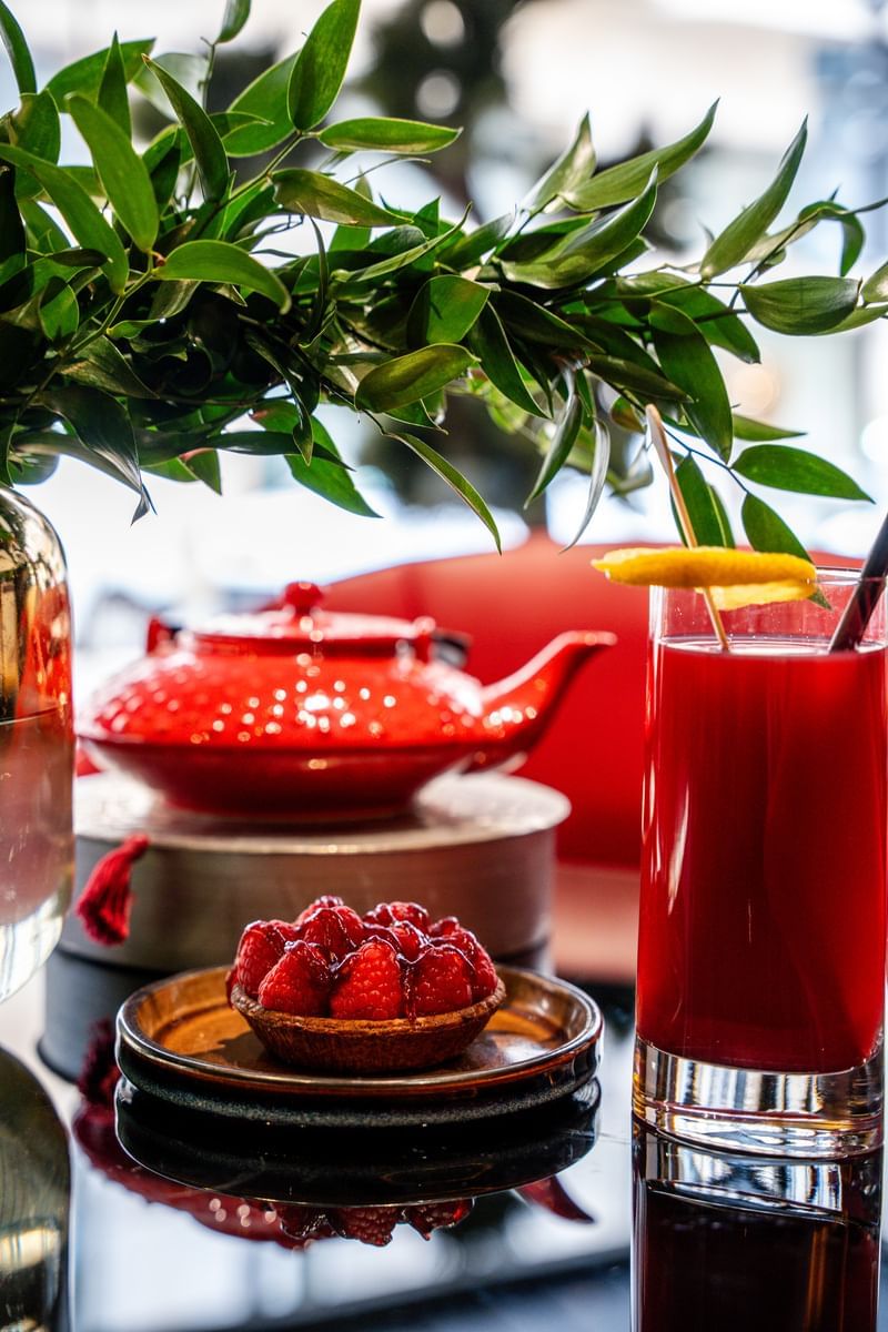 La vie est une fête (Liqueur St Germain, Prosecco, franboises glacées, jus de cranberry) 21€